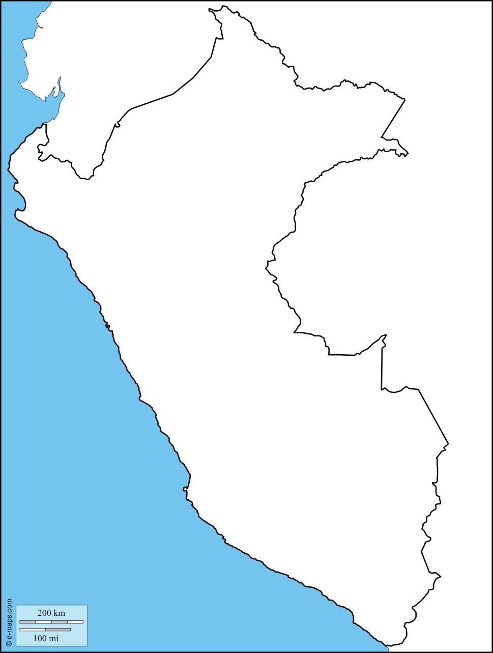 Peru blank map. Peru map outline (South America - Americas) to print. Peru map outline (South America - Americas) to download.