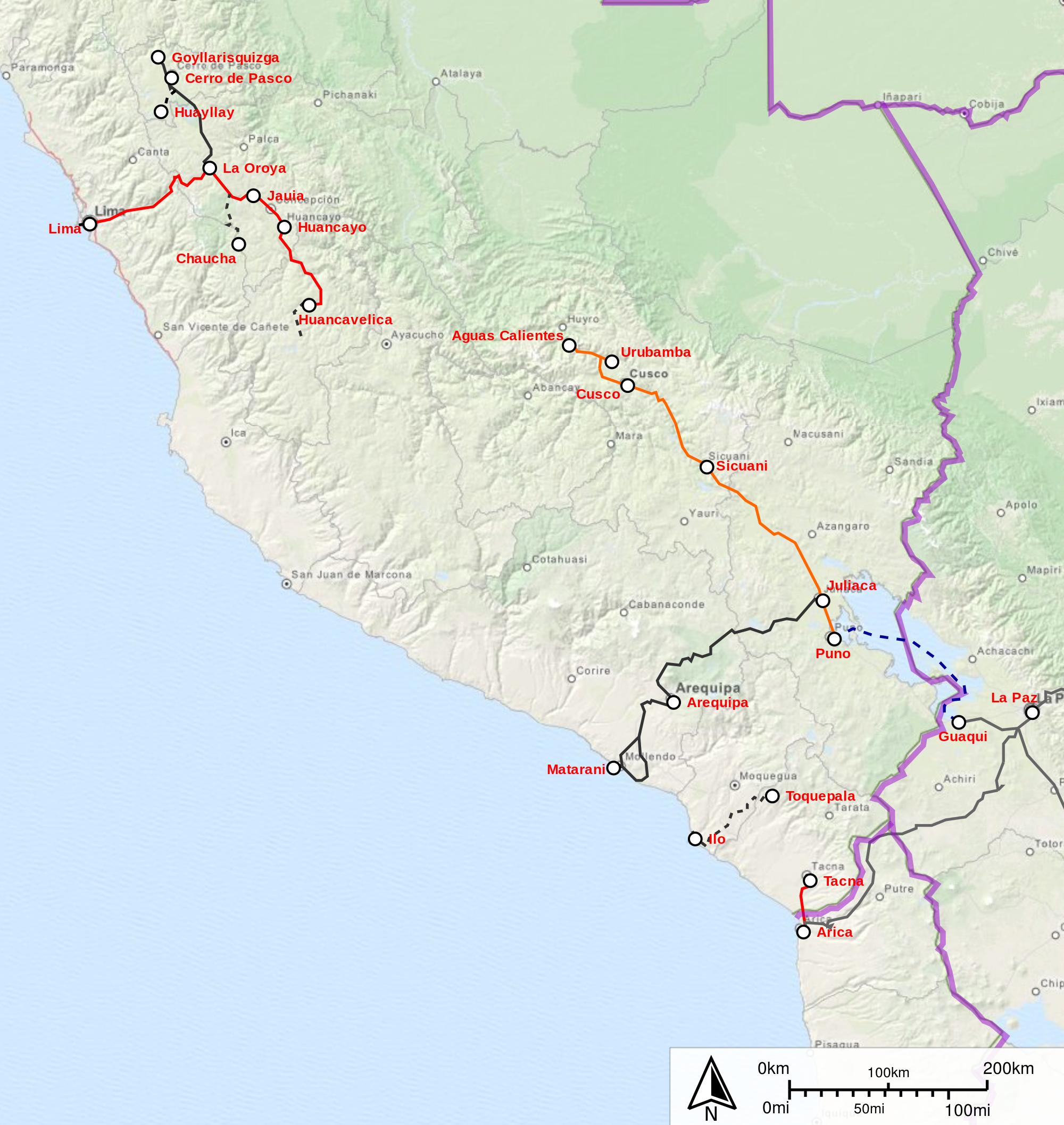 Peru train map. Peru rail map (South America - Americas) to print. Peru rail map (South America - Americas) to download.