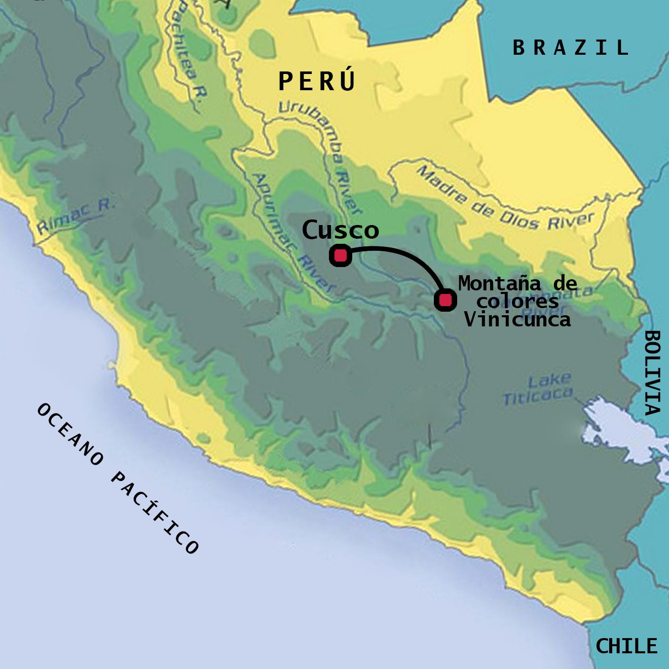 Rainbow mountain Peru map